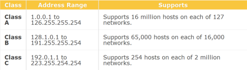 IP체계는 주로 A,B,C 세가지 클라스로 구분합니다. IP 클라스는 네트워크의 규모와 호스트의 개수로 정하게 됩니다. 네트워크가 호스트의 수보다 클 경우 A클라스를 사용하고, 두 부분이 비슷할 경우에는 B클라스를 사용합니다. 그리고 비교적 적은 규모의 호스트 수를 가진 경우에는 C클라스를 할당합니다.