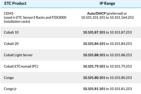 조명 네트워크에서 주로 많이 사용하는 Artnet에서는 Class A IP 어드레스를 사용합니다. 대표적으로 IP 어드레스 ‘2.x.y.z’ 를 사용하도록 권장하고 있습니다. 또한, INNA( Internet Assigned Numbers Authority)에서 공용 네트워크와 구분하여 개별적인 용도로 사용할 수 있도록 지정한 IP 어드레스 범위인 ‘10.x.y.z’나 ‘192.168.x.y’를 사용할 수도 있습니다. 세계적인 조명업체인 ETC는 콘솔이나 네트워크 장비의 IP 어드레스 범위를 지정해 주면서 ’10.x.y.z’를 주로 사용합니다. 그리고 콘솔 업체인 MA Lighting은 매뉴얼에서 네트워크 설정을 설명하면서 ‘192.168.x.y’을 예로 들어 사용하고 있습니다. 꼭 지정해서 사용해야하는 것은 아니지만 Artnet을 사용하는 장비의 네트워크는 대부분 이 세 가지 IP 어드레스를 사용하고 있는 것 같습니다.