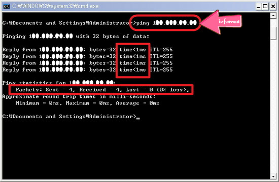 아래 화면에서 [패킷: 보냄 = 4, 받음 = 4, 손실 = 0 (0% 손실)] 이라는 결과를 통해서 테스트 패킷을 4번 보내서 4번 모두 반응을 받은 것으로 손실이 없다는 것입니다. 만약 ‘Request timed out’이라는 메세지가 나오거나 lost 패킷이 있다면 네트워크 연결애 문제가 있거나 해당 디바이스가 정상적으로 동작하지 않는다는 것을 확인 할 수 있습니다.