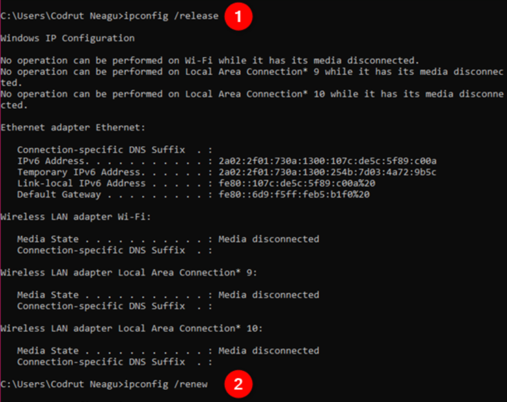 ipconfig /release & ipconfig /renew