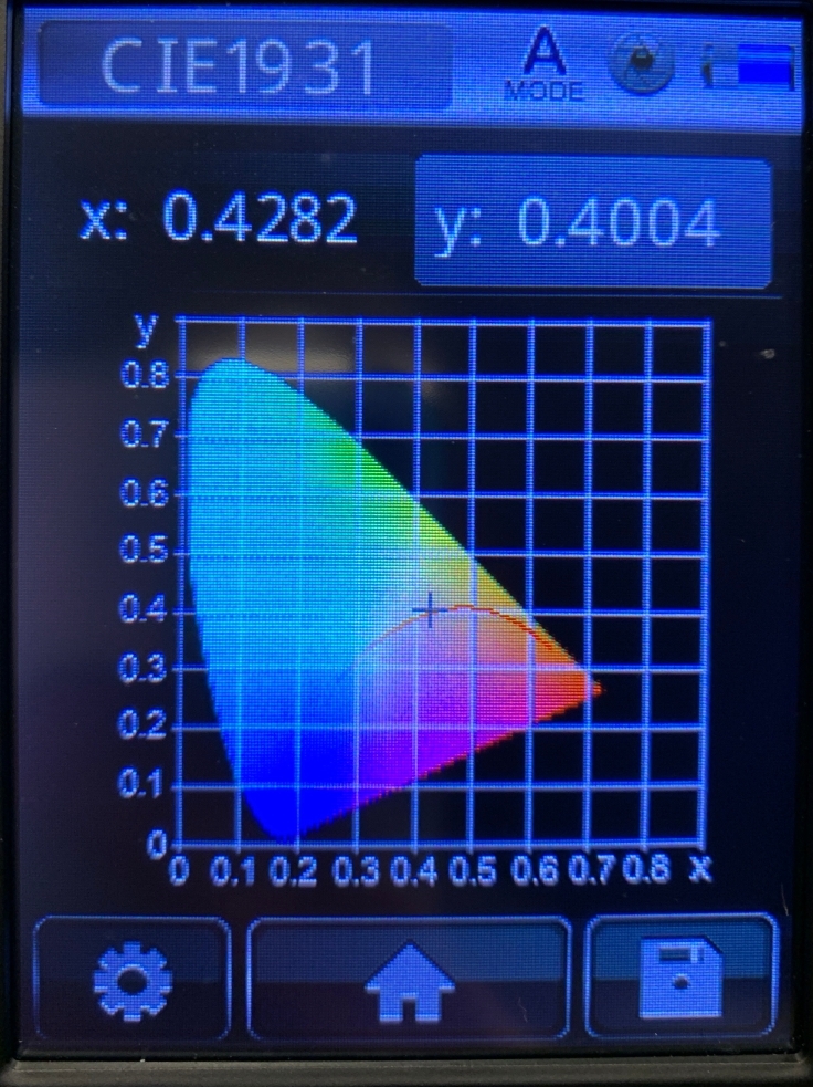 텅스텐이나 백열광을 주로 사용할 때는 이 개념의 색온도를 사용합니다. 하지만 광원에서 열을 발생하지 않는 LED와 같은 광원은 상관색온도(correlated color temperature)를 사용하게 됩니다. 흔히 CCT라고 불리는 색온도입니다. 광원에서 발생하는 열이 없기 때문에 앞서 소개한 CIE1931의 흑체곡선상의 근사한 값을 상관색온도로 사용하게 됩니다.