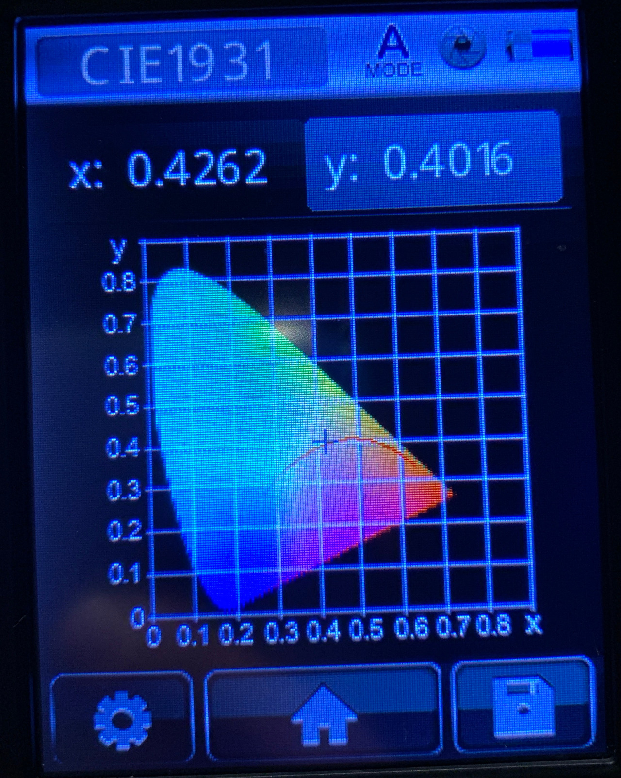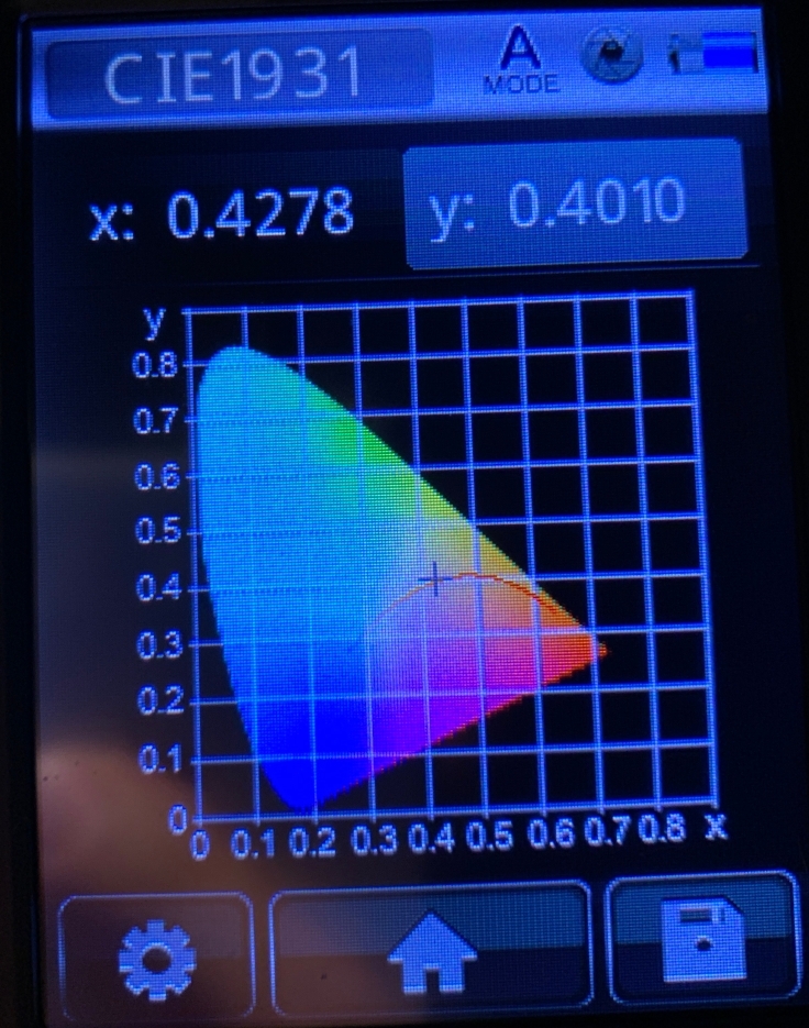 색온도를 맞추는 것만으로 광원의 색상을 정확하게 맞출 수 없다면 다른 방법은 무엇이 있을까요? 최근 CIE xy coordinates를 사용하여 조명광원의 색상을 맞추는 방법이 사용되고 있습니다. 광원의 색온도를 흑채곡선상의 White로 생각하지 않고 색공간 내의 하나의 색좌표로 개념을 확장한 것입니다. CIE1931 색공간 내 (x,y)좌표를 이용하여 광원의 색상을 동일하게 맞출 수 있습니다.